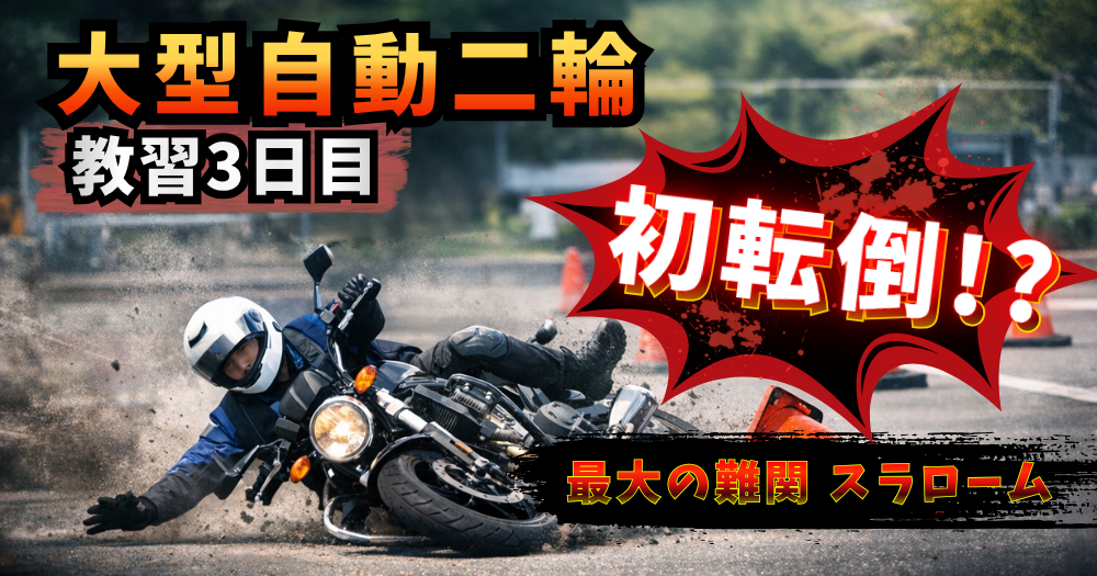 【車校体験談 3日目】初転倒!?最大の難関「スラローム」との戦い