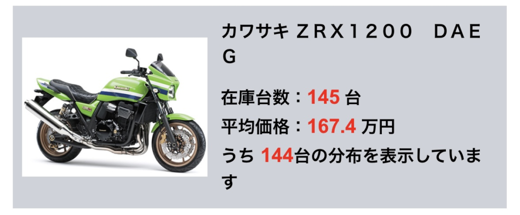 「ZRX1200 DAEG」の中古相場が知りたい方の参考になればと思います。